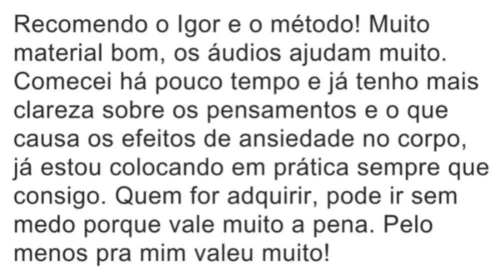 🧠 Vai aprender técnicas de relaxamento que vai ajudar a superar a Ansiedade;